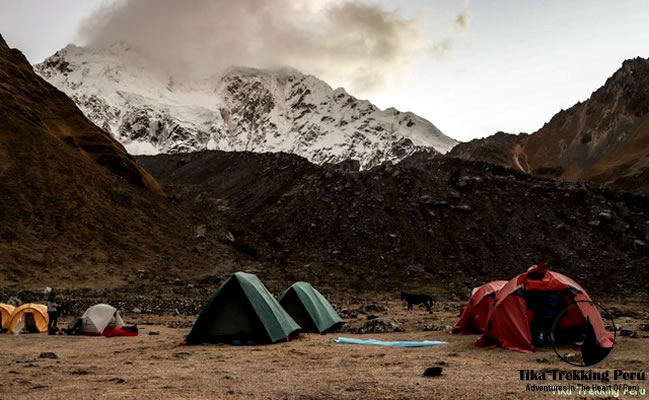 We leave Cusco at 06.00 am in a private transportation and start a scenic morning scenic bus ride to our trail starting point at Challacancha. Along the four-hour drive, we cross the town of Limatambo (2100m/6888ft), an important point of access to the city of Cusco during the time of the Inca Empire. We leave Limatambo and drive up a beaten track along the right shore of the Apurimac River, to reach Mollepata (2800m/9184ft), then Cruzpata (3100m/10168ft) and finally Challacancha, where we meet our wranglers and horses. After a short introduction we start our hike, following the paths of the locals on a soft ascent towards the base of Mt. Salkantay (6271m/20569ft). After lunch in Salkantaypampa, we start our sometimes steep 2 hrs ascent to our camp at Soyroccocha, just next to the impressive glacier of Salkantay (4200m/13776ft). This will be a cold night so very warm clothes are essential.